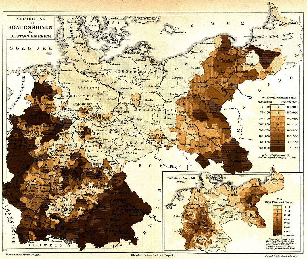 この時ドイツと一緒にならなかった大国オーストリアが、ハプスブルク家の皇帝のもとチェコ、ハンガリー、北イタリアの一部、クロアチア、ガリツィア(現ポーランド南部~ウクライナ西部)など、ドイツ語を話さない人々が暮らす様々な地域を治めていて、ドイツ帝国と並ぶオーストリア=ハンガリー二重君主国という大帝国を築いていたことは比較的有名かもしれません。もっとも、それはドイツ帝国にも言えることでした。もともとプロイセン王国は東部にポーランド人やリトアニア人が暮らす地域を領有していましたし、1864年の戦争ではデンマークから、さらに普仏戦争後はフランスから広い範囲の領土を獲得しました。併合を期に土地を離れた人も多かったとはいえ、そうできない人もまた少なくありませんでした。つまり、ドイツ帝国は北にデンマーク語を、西にフランス語を、東にポーランド語などスラヴ系言語やリトアニア語を話す、つまりドイツ語が必ずしも母語ではなかった住民を多く抱えていたのです。